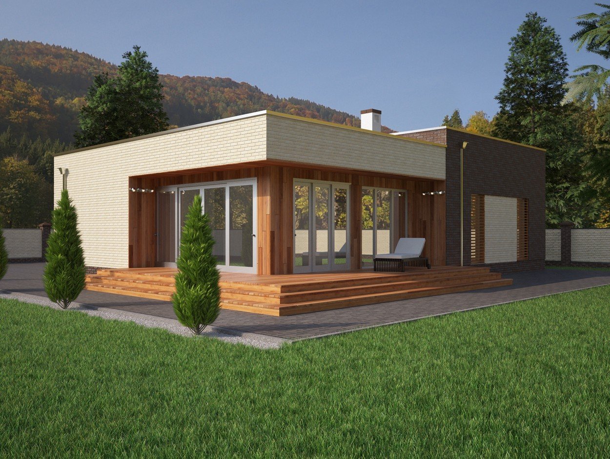 Строгий и лаконичный коттедж в стиле «Минимализм» имеет рациональное планировочное решение: гостиная-столовая с выходом на террасу, кухня, котельная; спальная тихая зона из 3 вместительных комнат, большой с/у, в одной из спальных есть свой с/у.